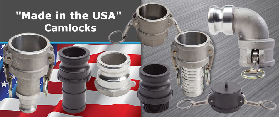 We offer a wide variety of American-made and imported camlock fittings, available in: aluminum, stainless steel, plastic (polypropylene) and brass. Our quick-connect fittings are available with National Pipe Thread (NPT), British Pipe Thread (BSP) and even fire hose threads (NH, NST). Our primary supplier of domestic camlocks has over 60 years of manufacturing experience.