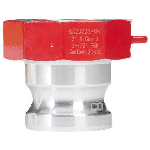 Our aluminum cam and groove to NH fire hose threaded fittings are designed to convert a standard NH/NST "fire hose thread" hose or adapter to a standard camlock. Finished in bright orange to distinguish them from regular camlock to NPT "pipe thread" cam and grove fittings. NH/NST threads are