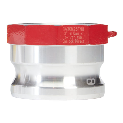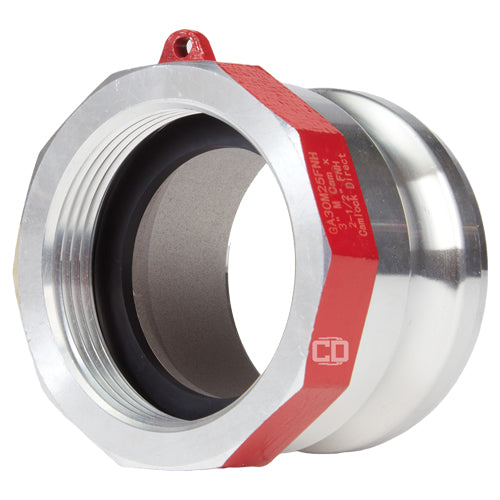 Our Haluminum cam and groove to NH fire hose threaded fittings are designed to convert a standard NH/NST "fire hose thread" hose or adapter to a standard camlock. Finished in bright orange to distinguish them from regular camlock to NPT "pipe thread" cam and grove fittings. NH/NST threads are