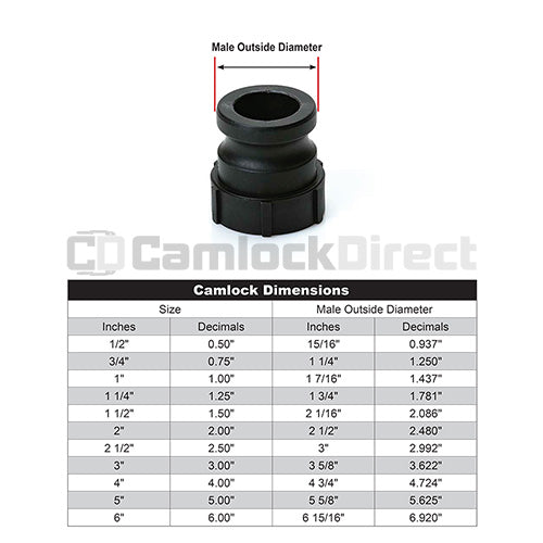 Warning: Polypropylene cam & groove should not be mixed with metal fittings. We recommend using polypropylene with other poly, plastic, pvc, banjo type camlock fittings.