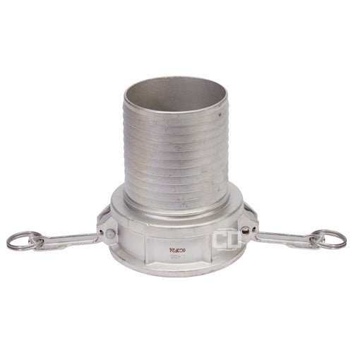Global type "C" stainless steel 4 inch female camlock (Cam & Groove) coupler to 4 inch hose shank.